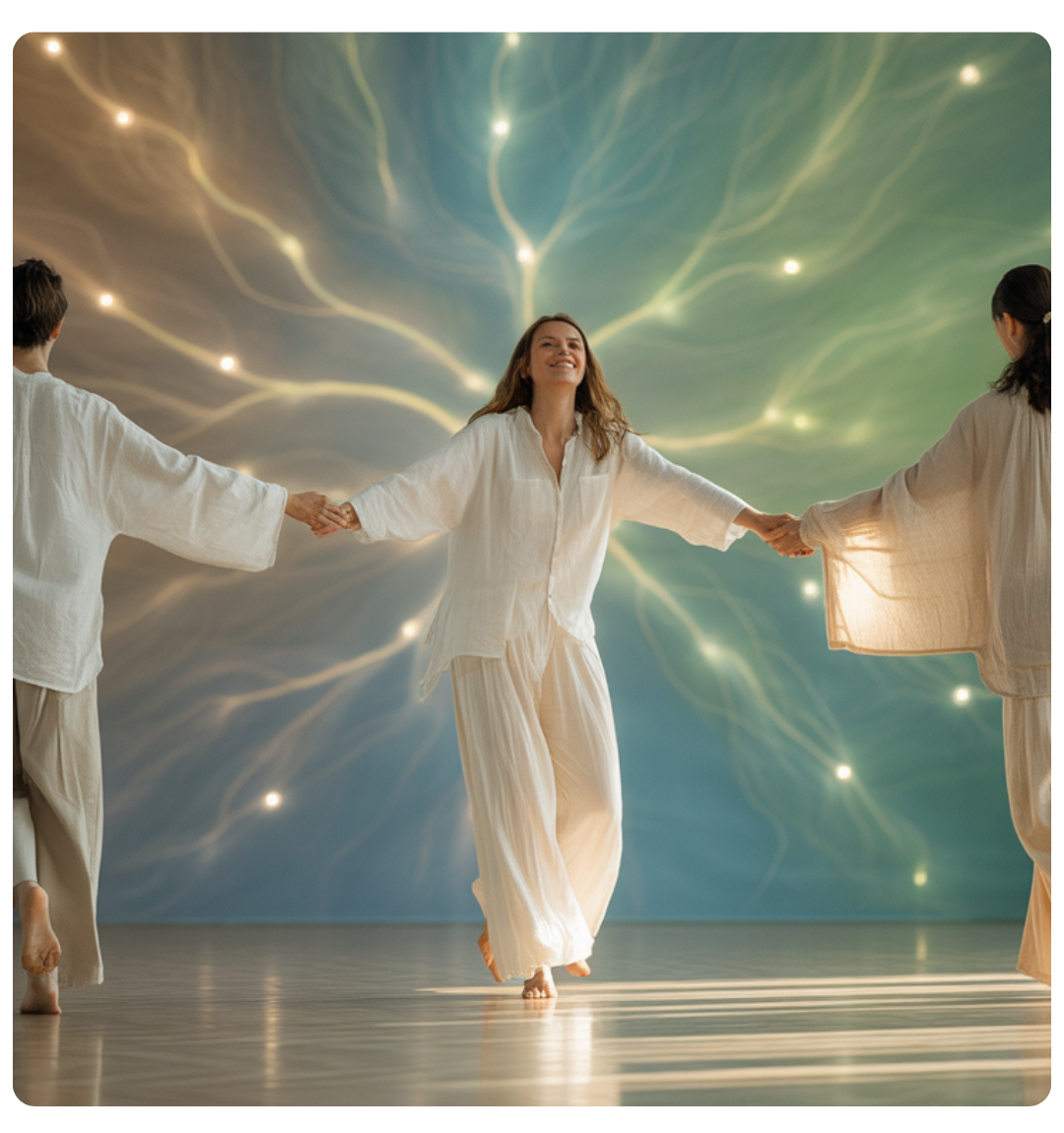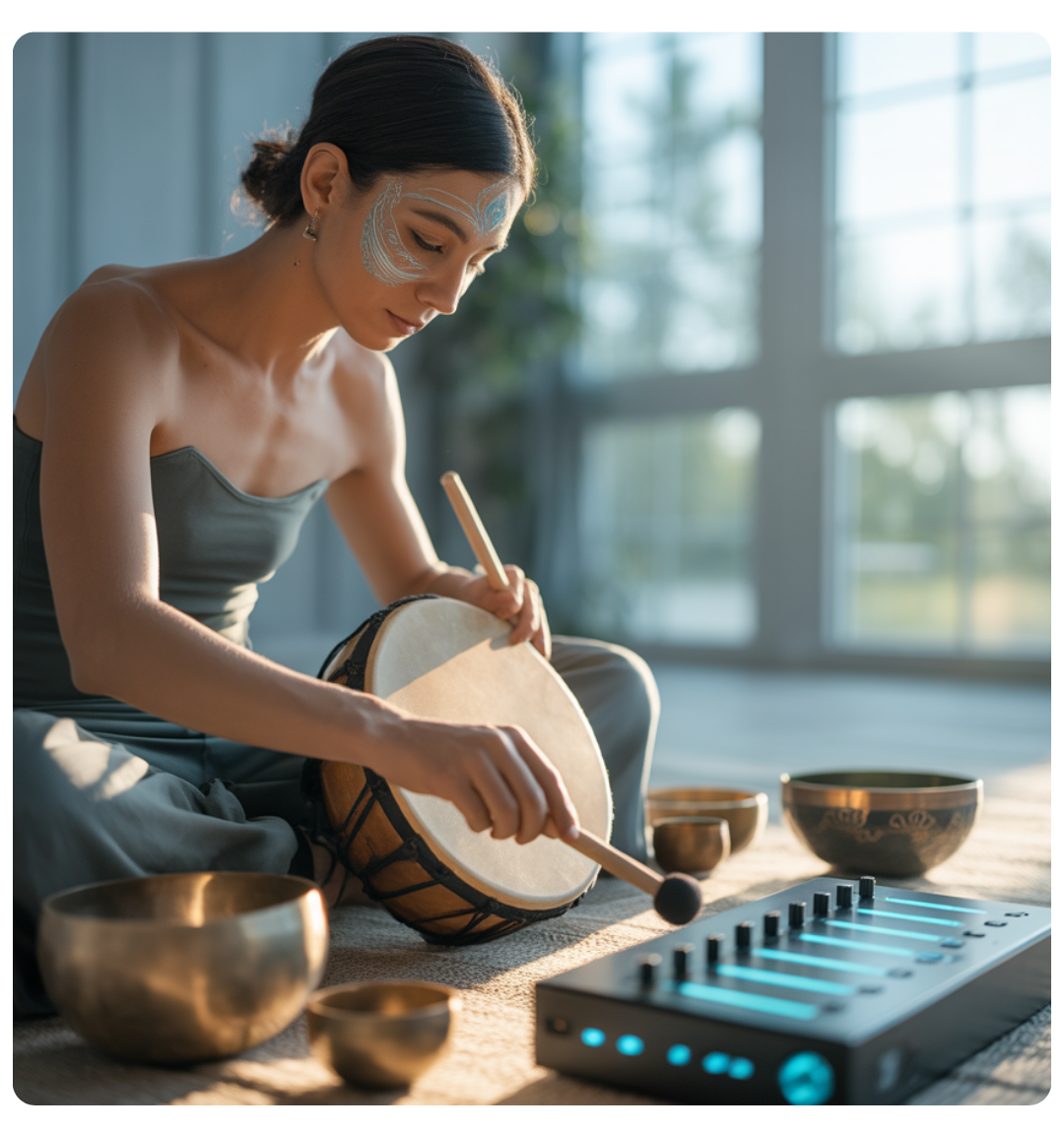 "People ask if SHE is just for women. I tell them: SHE is the current—like electricity, like rhythm, like breath. It runs through all of us. The Somatic body wisdom, the Hypnotic trance states, the Ecstatic release... these aren't gendered. They're how we return home to ourselves through sound and movement."